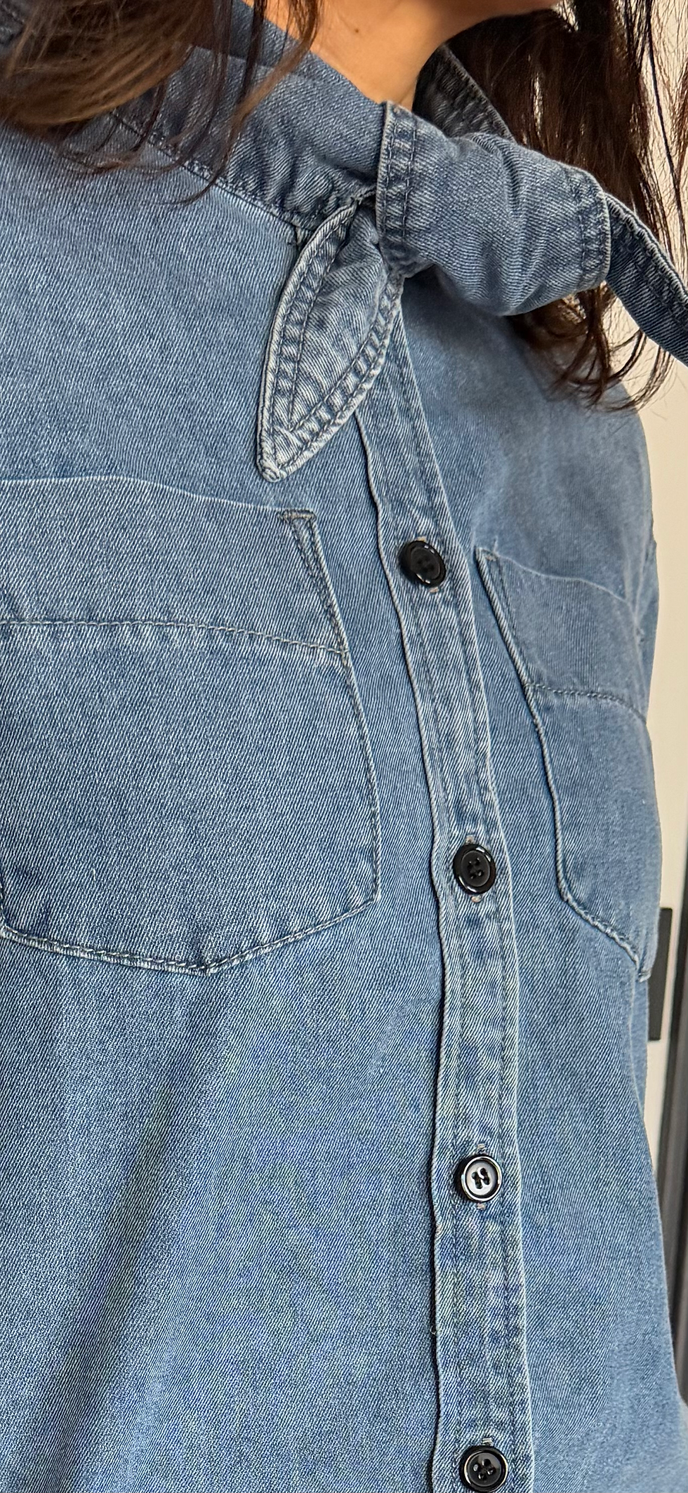 Chemise en Denim à Col Lavallière